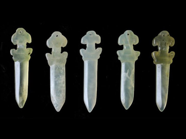 寓意:風(fēng)水劍主要有避邪和調(diào)理風(fēng)水的作用,玉器通靈效果更佳,同時(shí)劍也有震懾作用。護(hù)墓主平安。